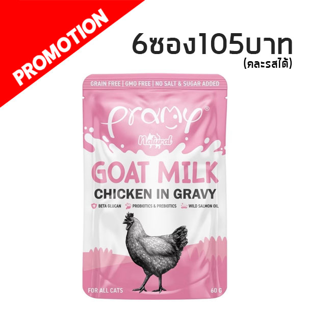 يتميز طعام القطط Pramy Goat Milk (الدجاج مع حليب الماعز في المرق) بتركيبة مصممة خصيصاً لتعزيز المناعة وتوفير ترطيب عالٍ، وإليك أبرز ميزاته: